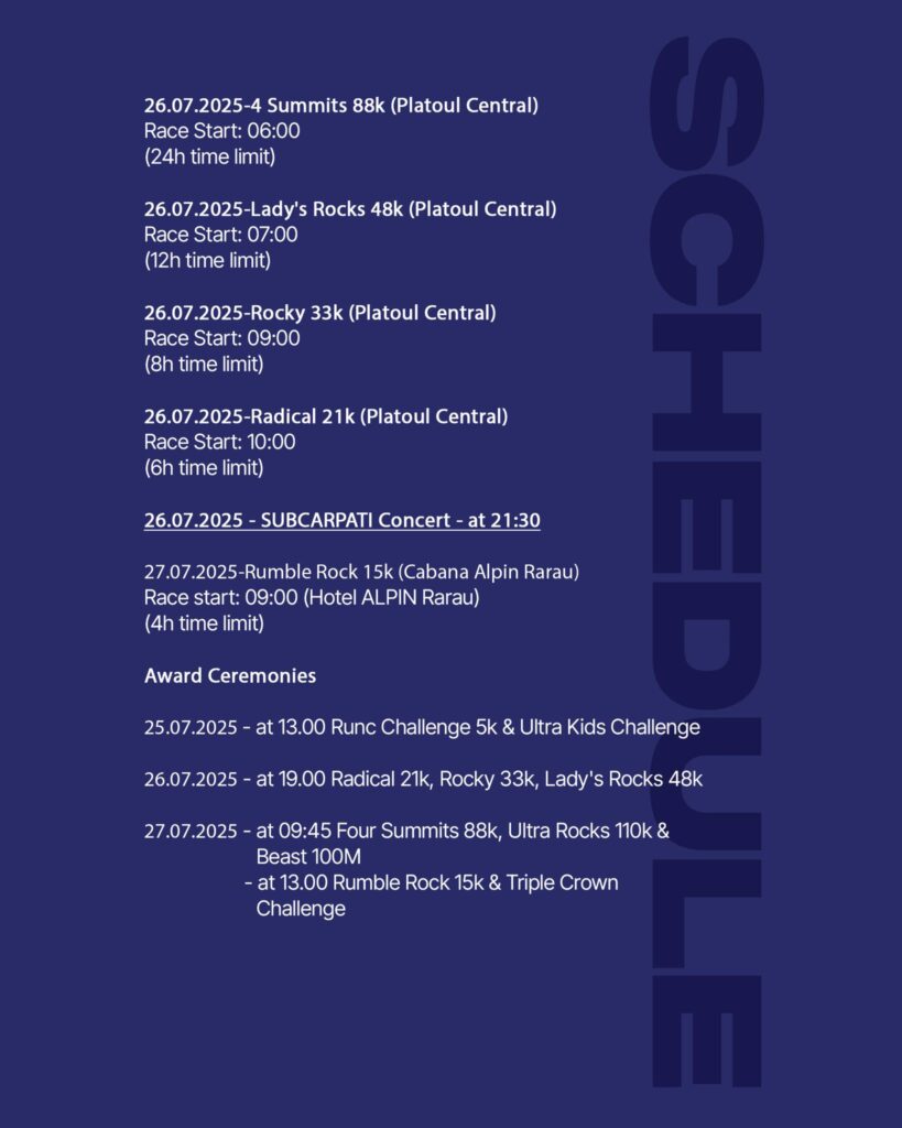 Kit distribution: 24.07 (15-19) – 26.07 (08-20) Platoul Central, 27.07 – Hotel Alpin Rarau (07:30 – 08:30)